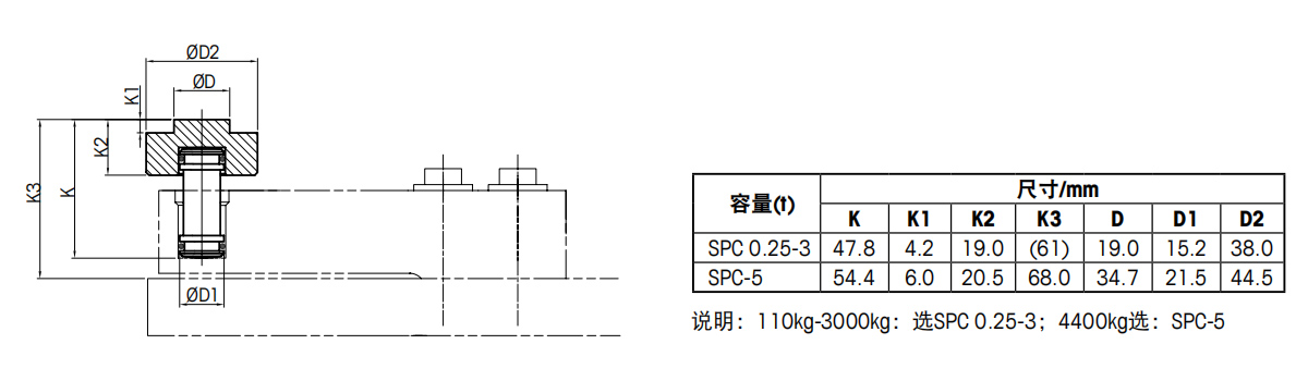| 额定容量 | kg | 110 | 220 | 550 | 1100 | 2200 | 3000 | 4400 | |
